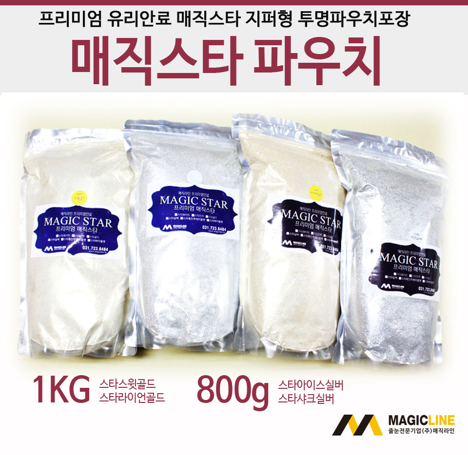 줄눈안료 | 매직스타 지퍼형투명파우치포장(1KG-스타스윗골드,스타라이언골드)-800g(스타샤크실버,스타아이스실버)