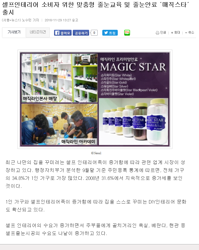 매직라인 줄눈교육 및 프리미엄줄눈안료 '매직스타'출시관련기사입니다-뉴스1